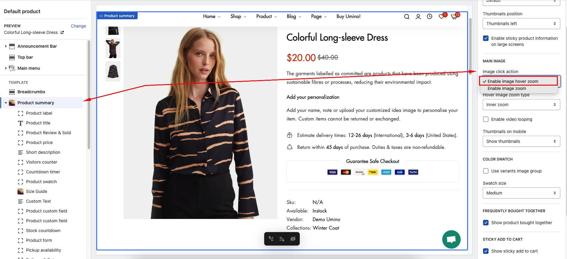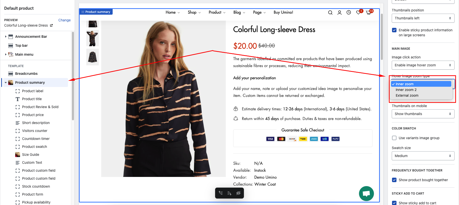 Step 2: In Product Summary > Hover image zoom type > Select option zoom