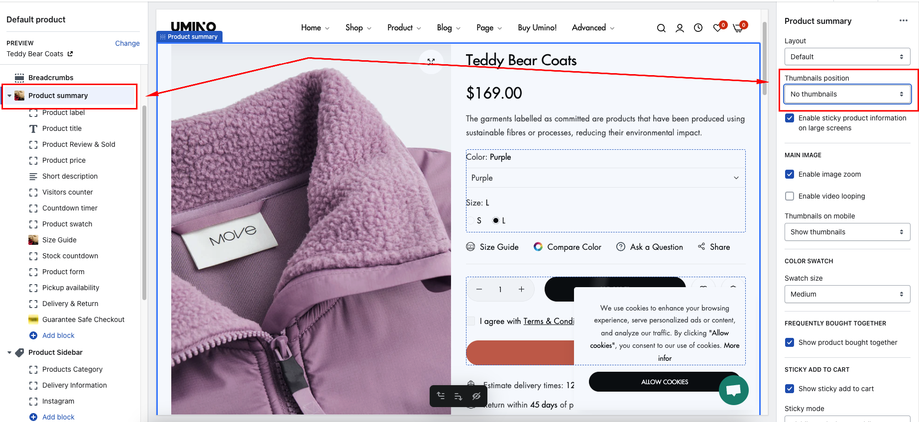 Product Thumbnails Position
