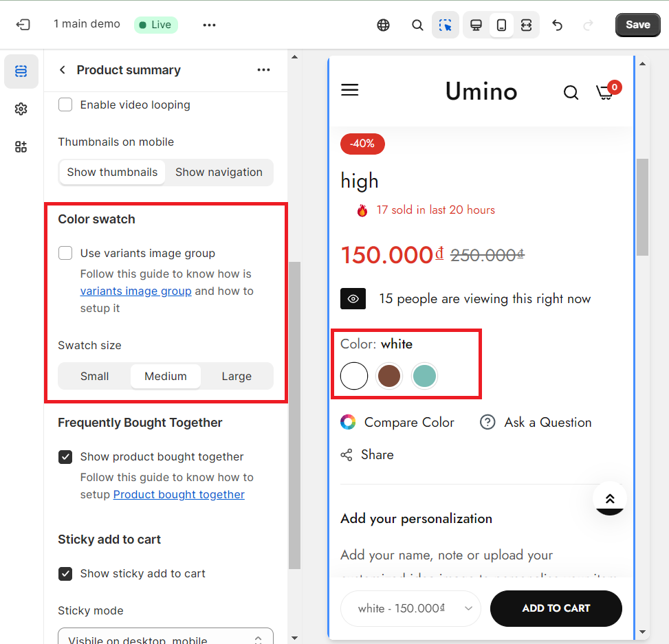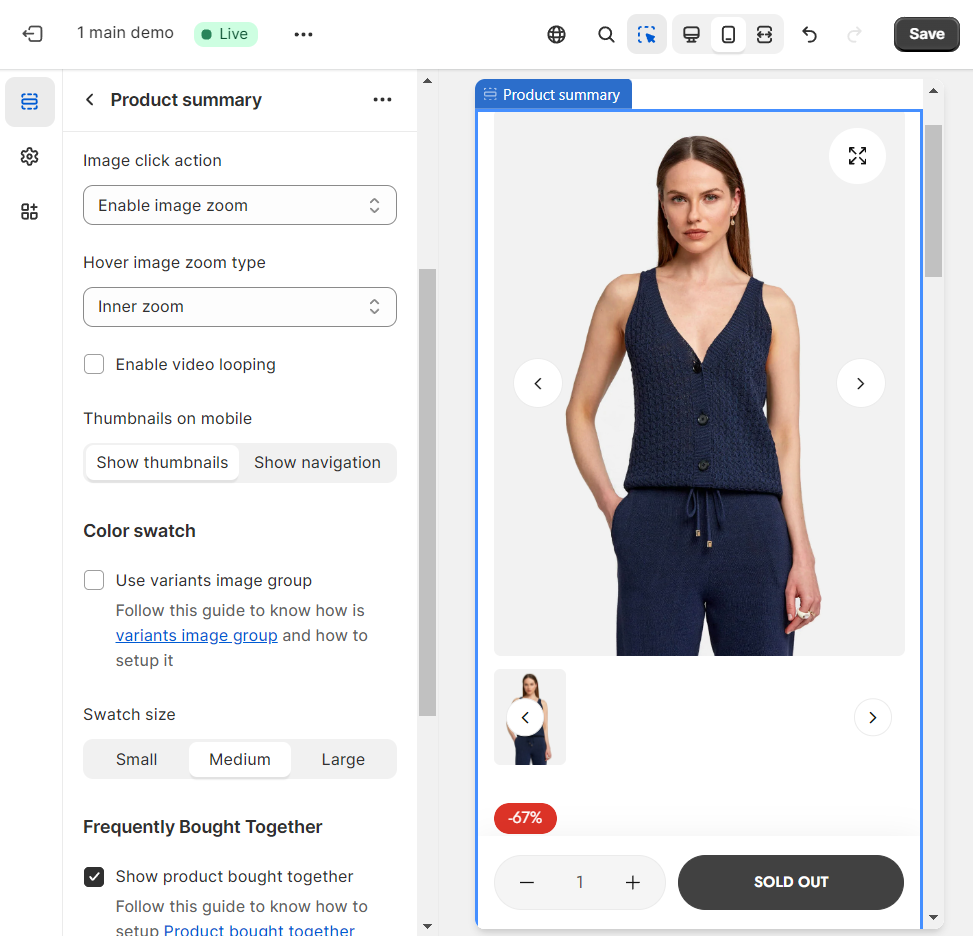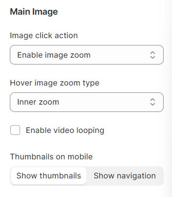 Enable video looping: Tick on this checkbox to enable video looping (when your product media has a video).