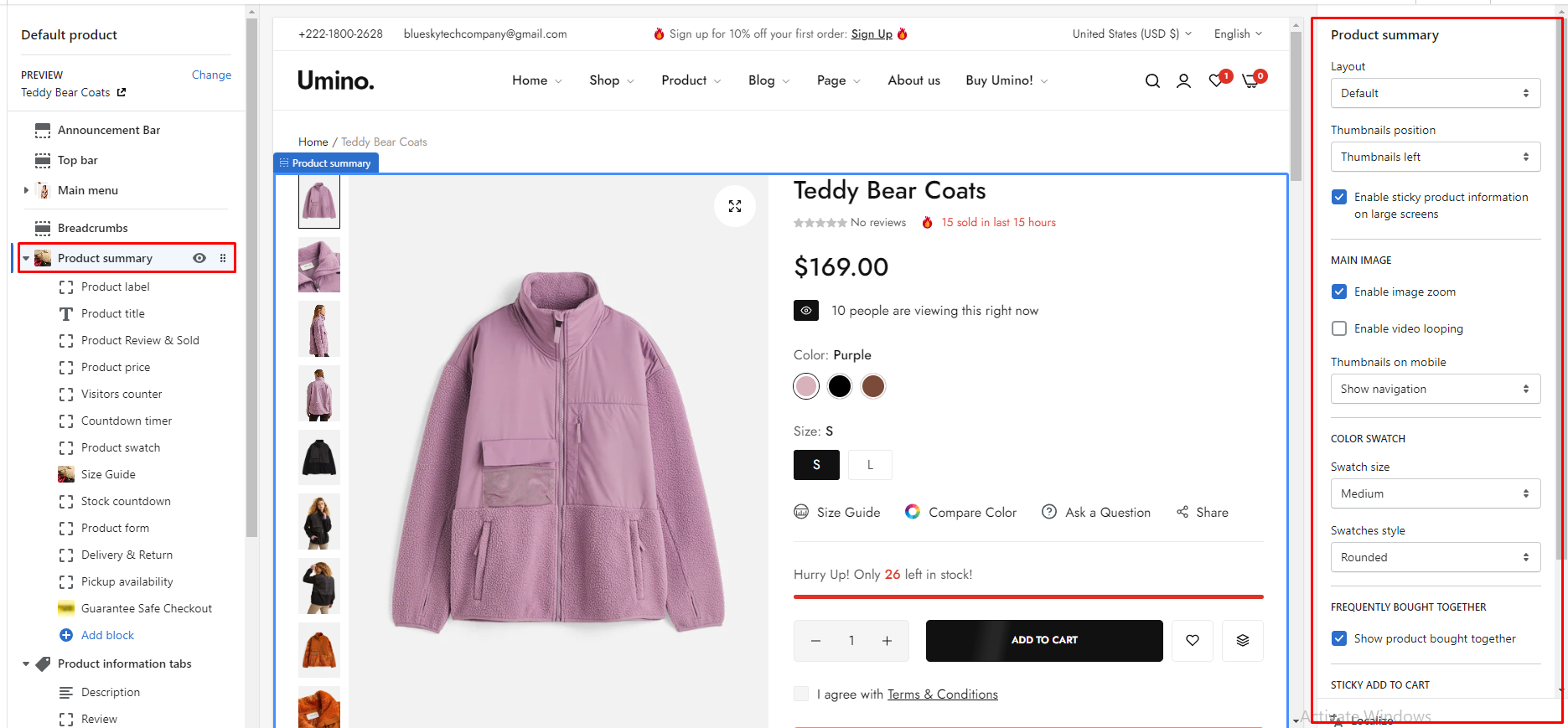 Sticky add to cart: This option allows you to display the sticky add to cart