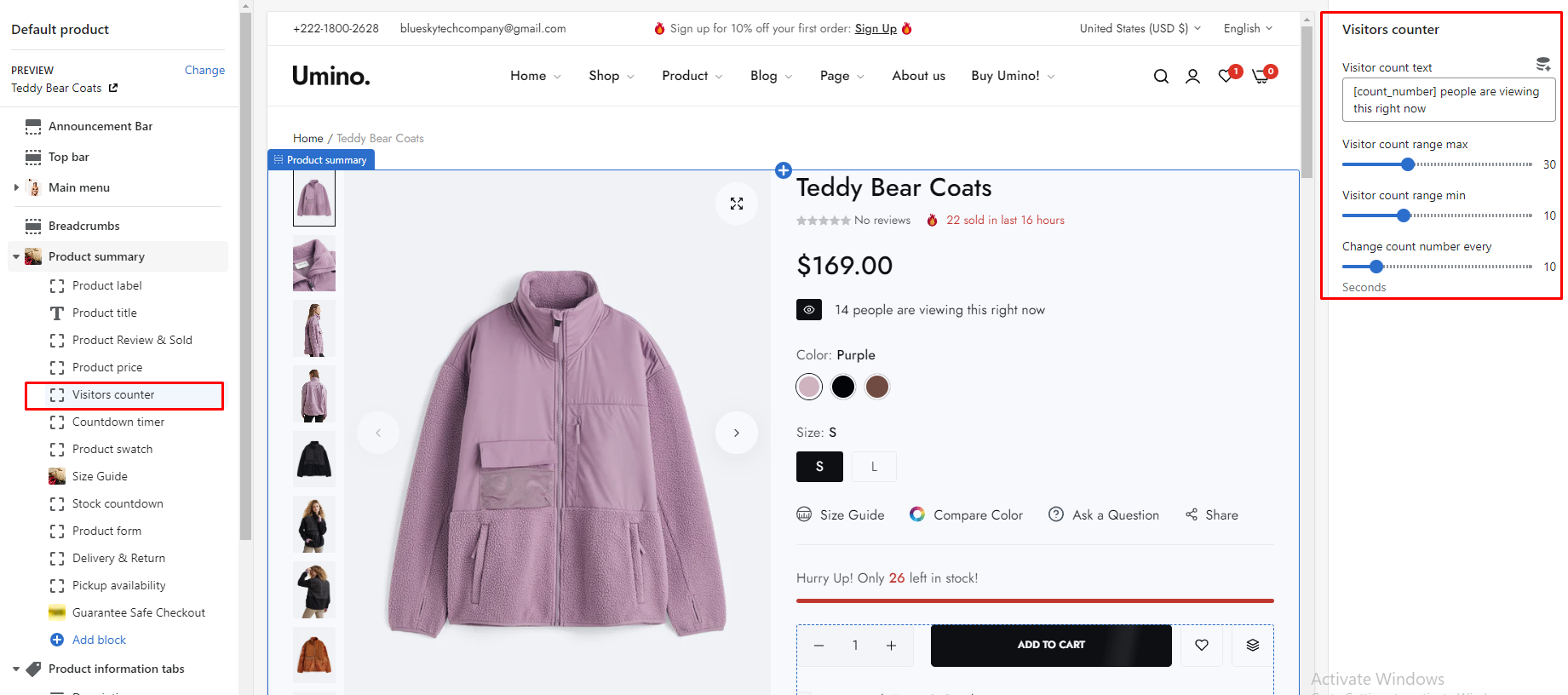 Visitor count text: You can add the content that you wanna show on the Live view message here.