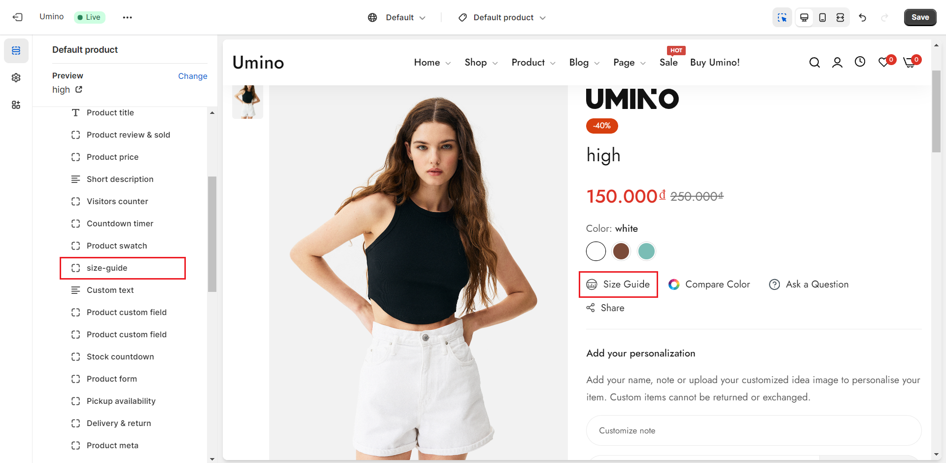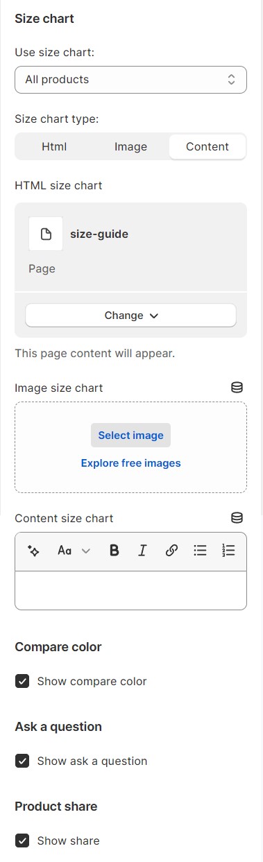Content Size Chart: This option allows you to add size guide content here