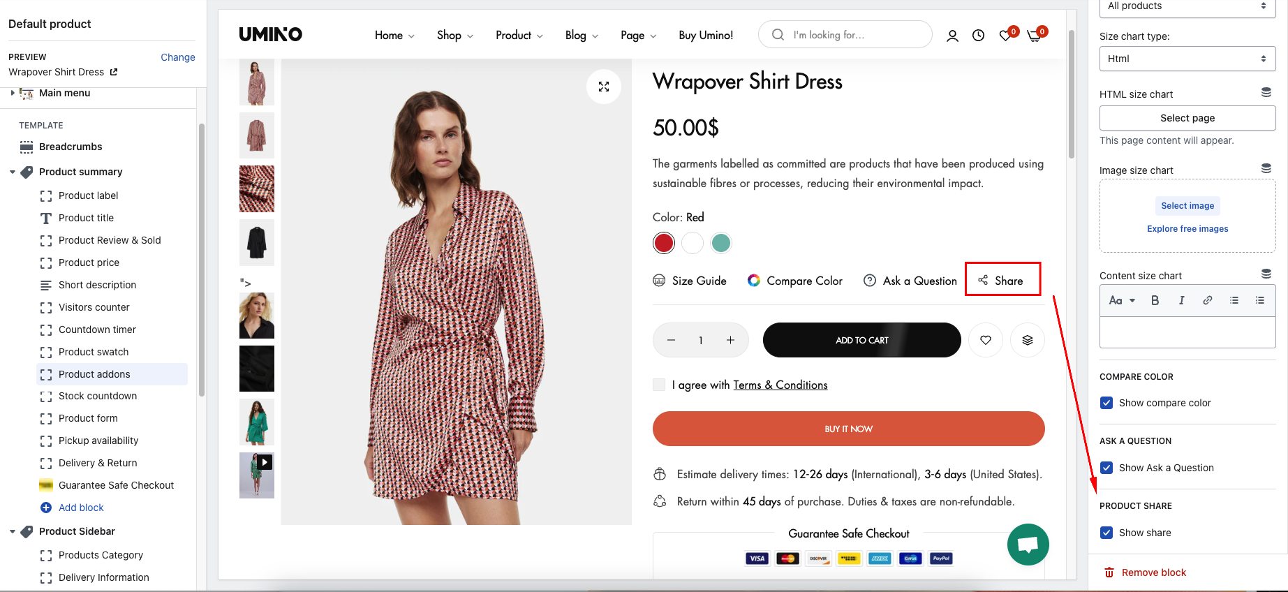 Show share: You can enable/ disable sharing here.
