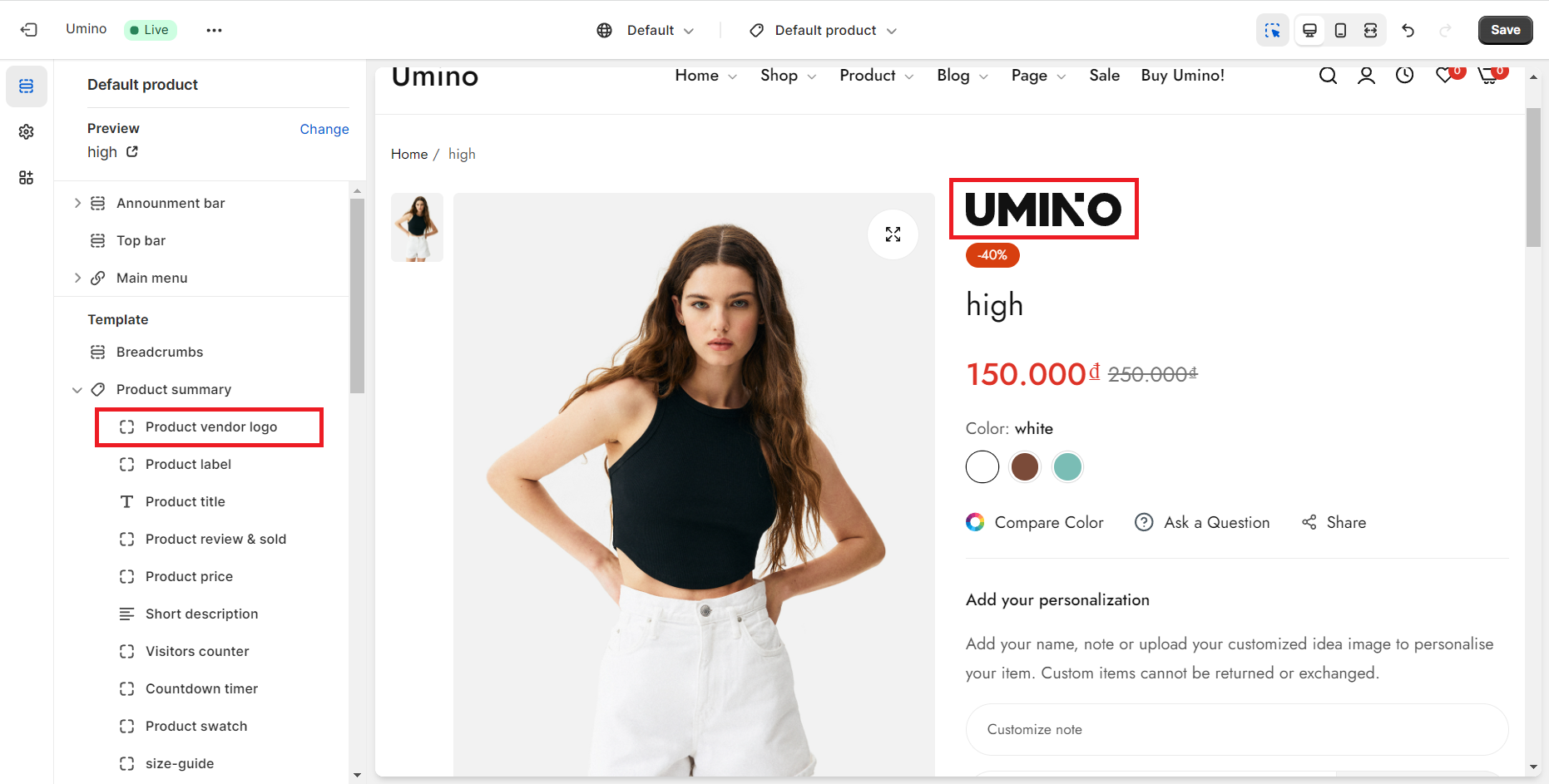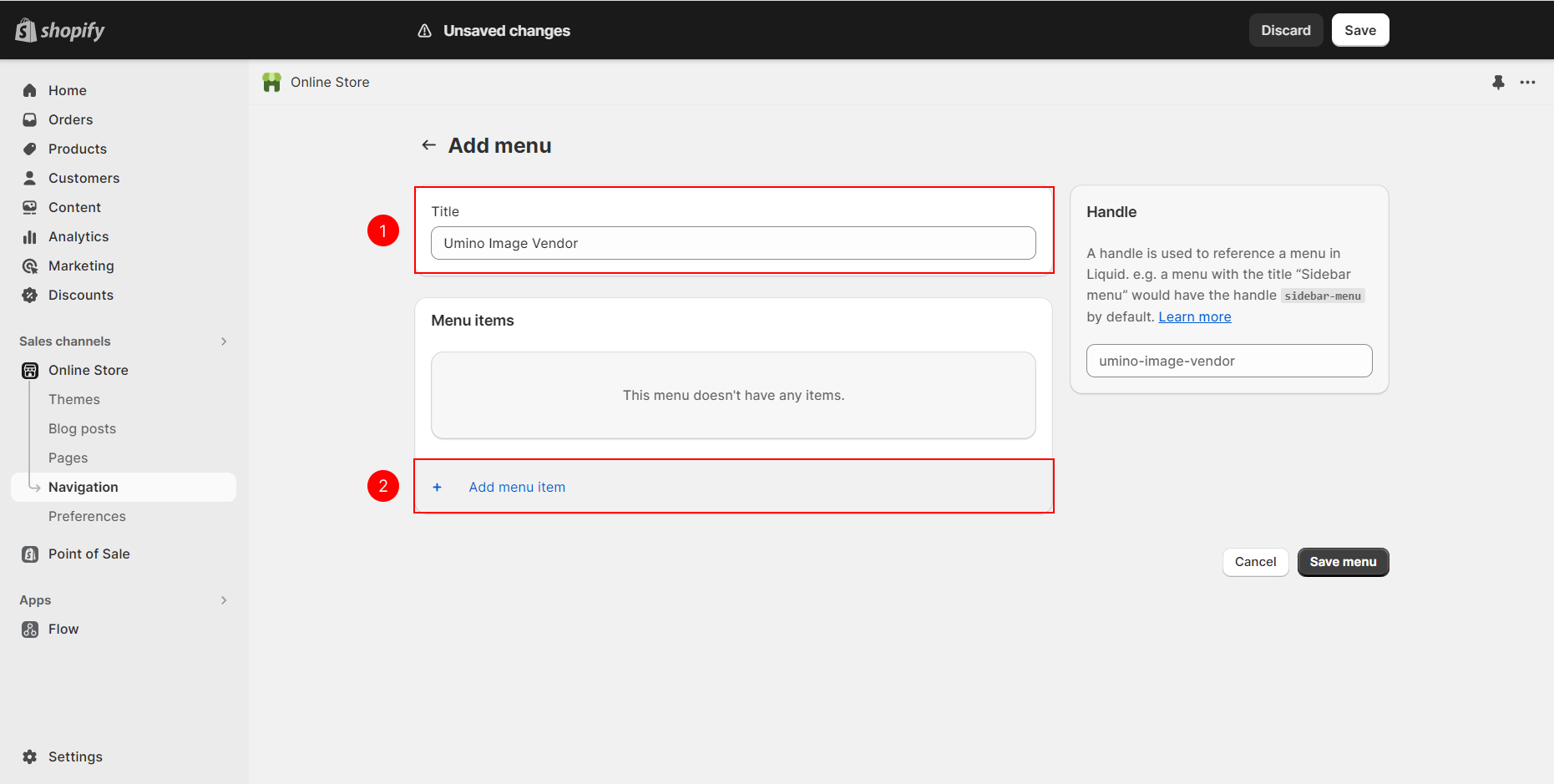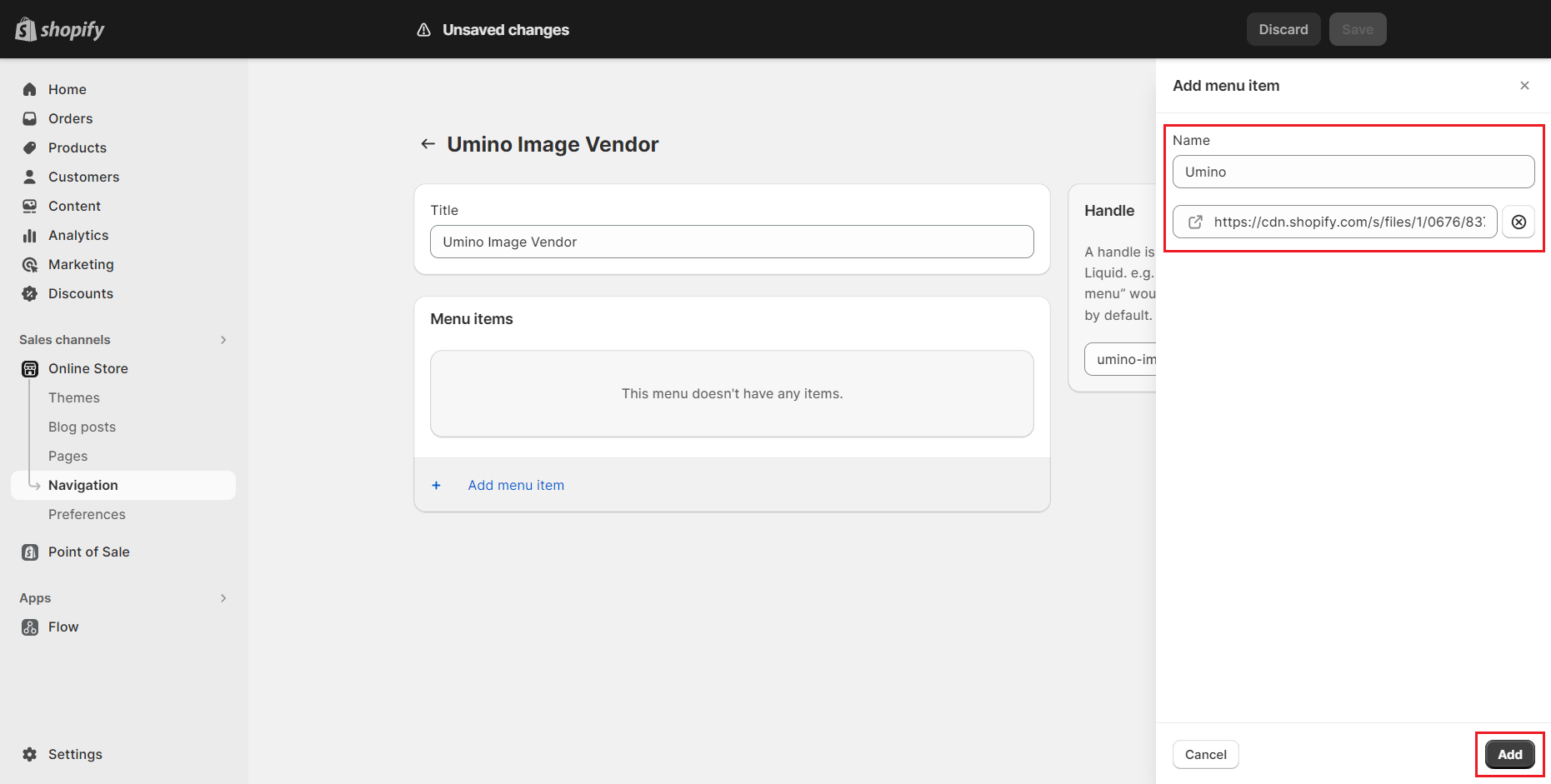 For this feature to work properly, fill in the title using any combination of uppercase or lowercase letters, and make sure to set the handle as "umino-image-vendor".