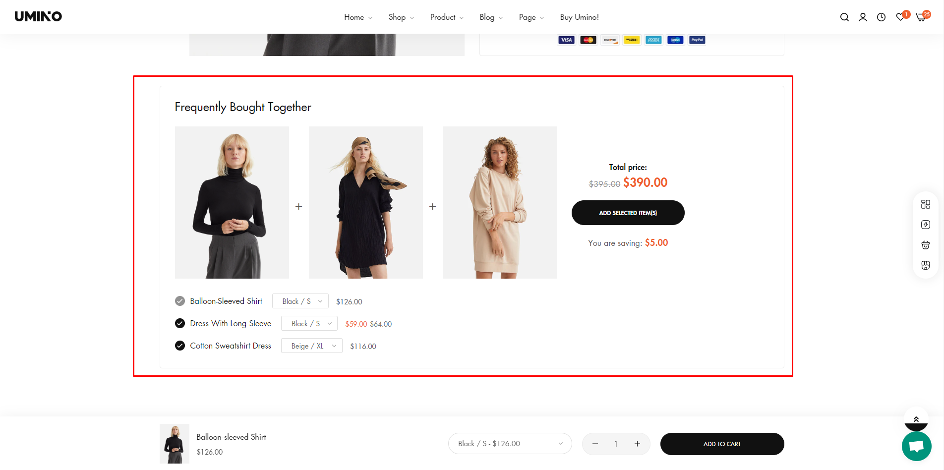 A "Frequently Bought Together" feature on Shopify is a list of products that are recommended to buy together with the product customers viewing.