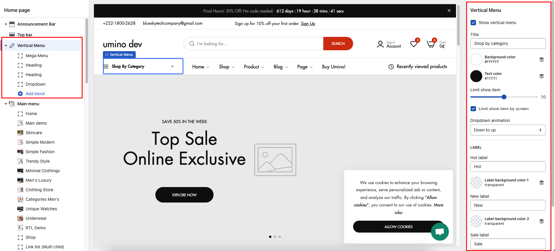 In the Vertical Menu section, Add block > Choose Block (Mega menu).