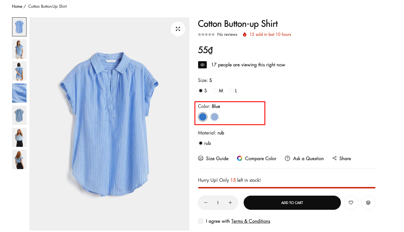 Setting: From your admin, click to Online Store -> Themes -> Product -> Color swatches