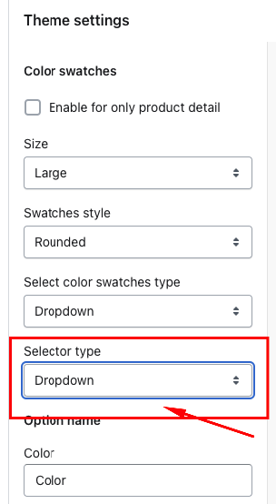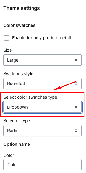 Select color swatches type : dropdown
