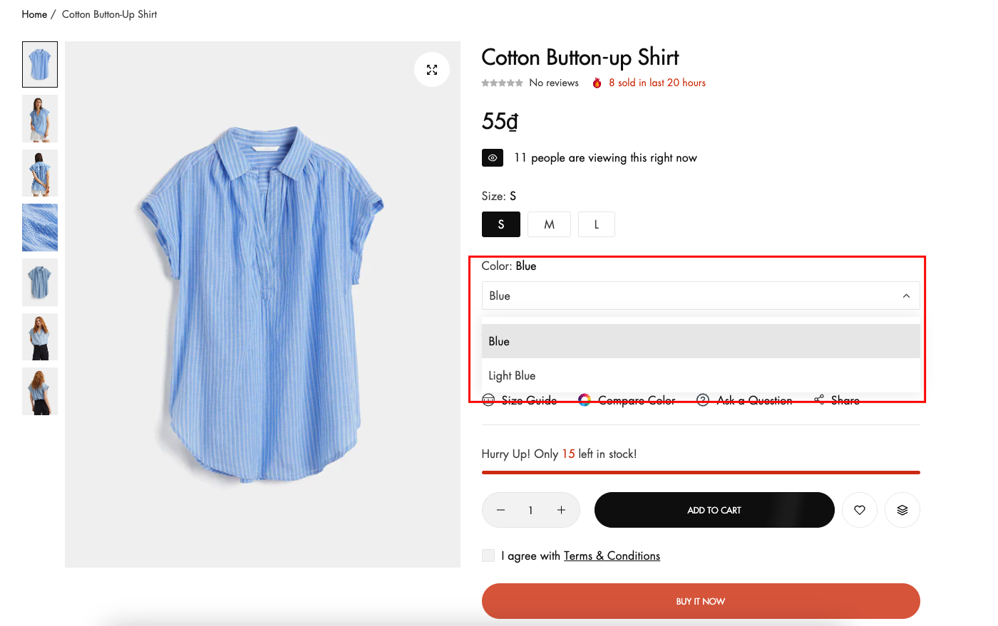 Note: Setting applied to variants other than variant color
