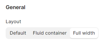 Select from a range of layout options, including Default, Fluid container, and Full width, allowing you to choose the most suitable design configuration for your content.