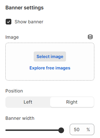 Define the position and width of your banner here, offering a straightforward means to customize its placement and dimensions. This allows you to tailor the visual impact of the banner to seamlessly integrate with your layout or design preferences.