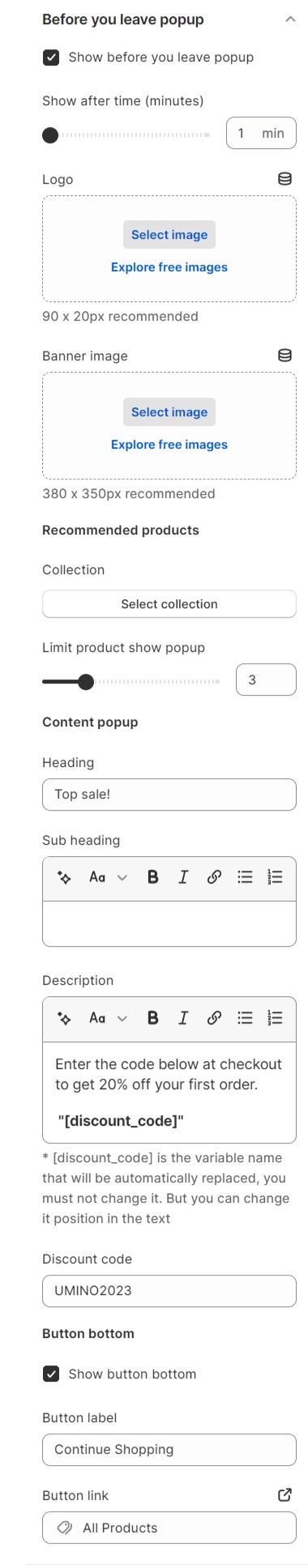 Before you leave popup