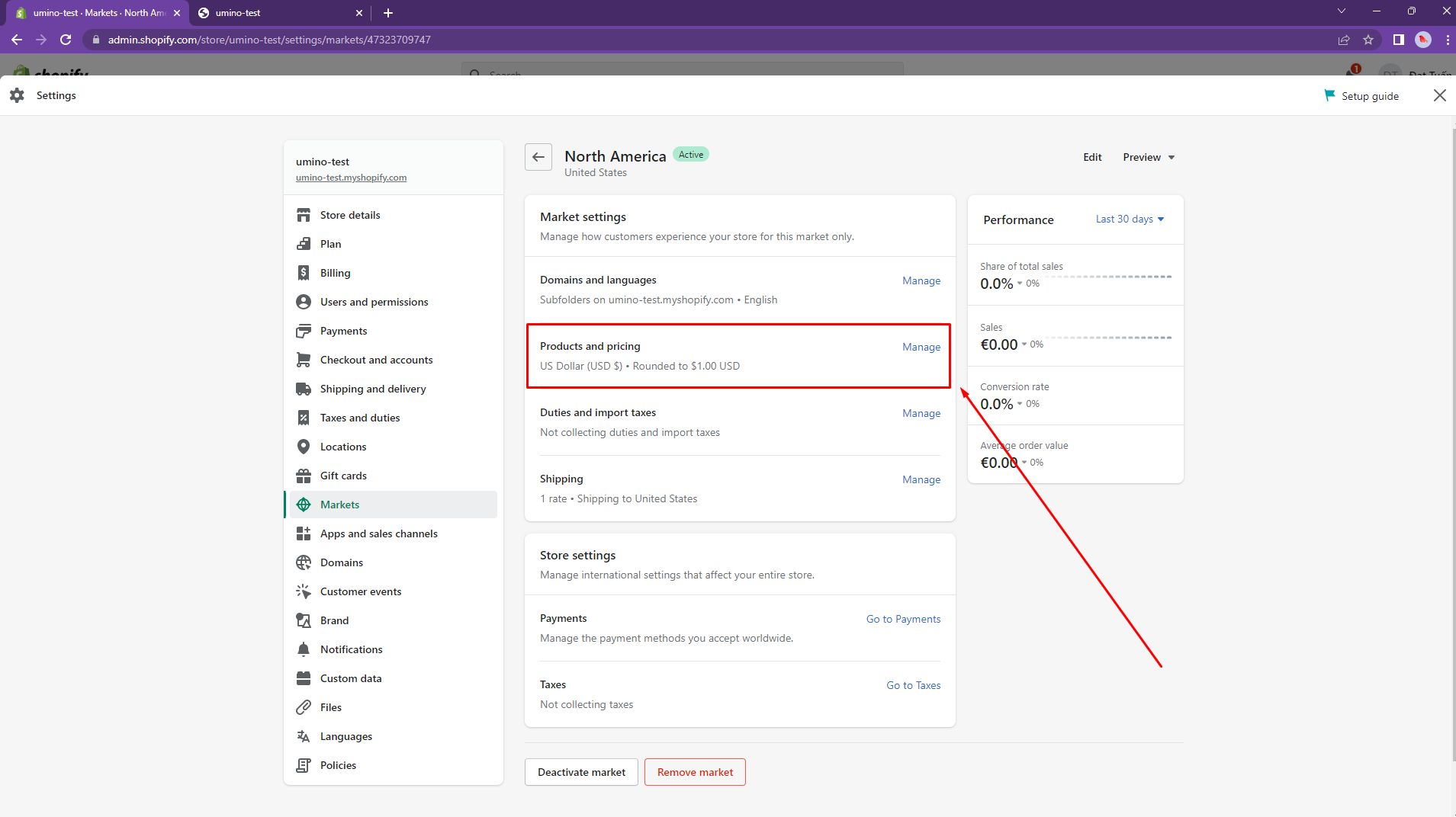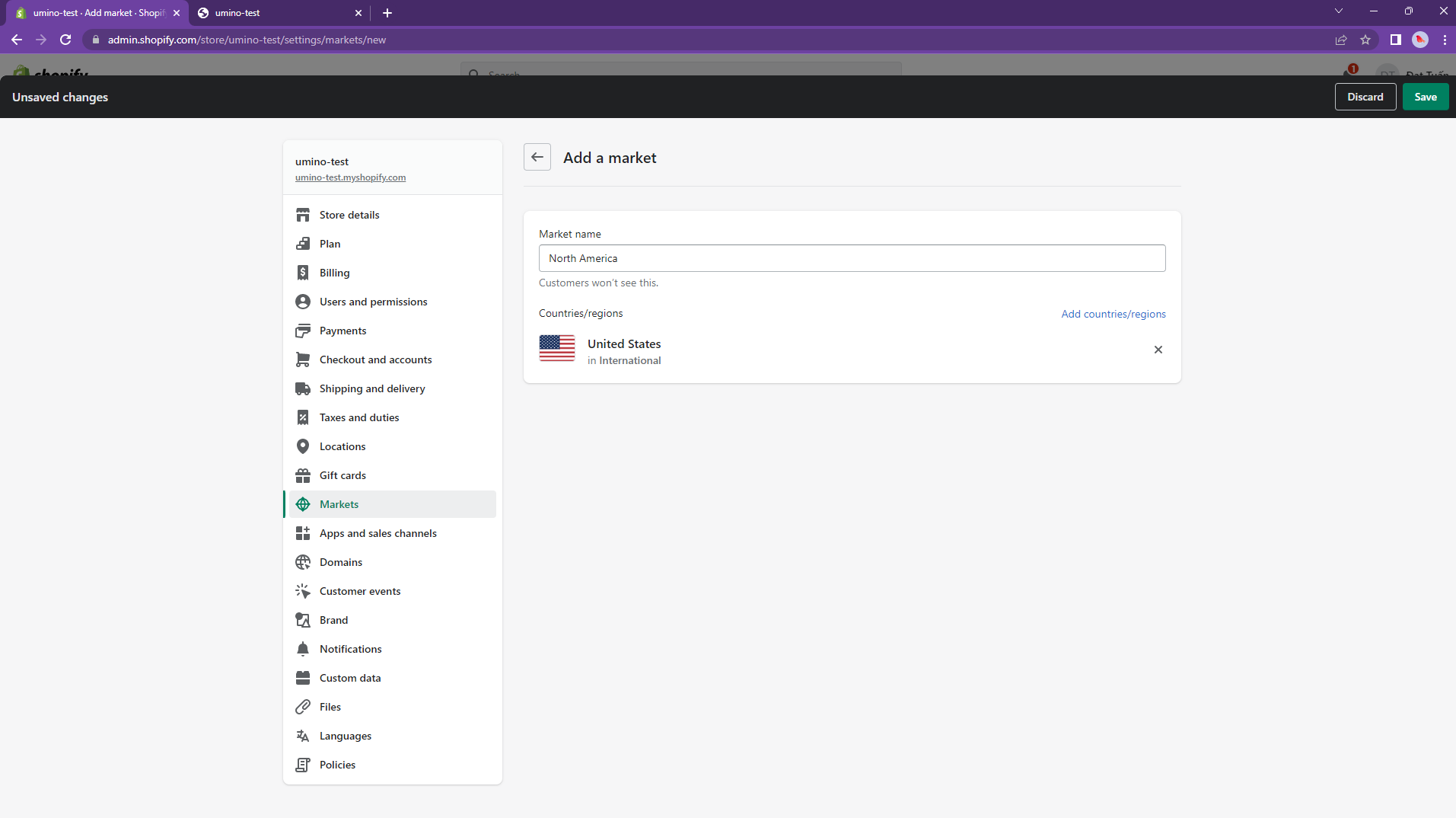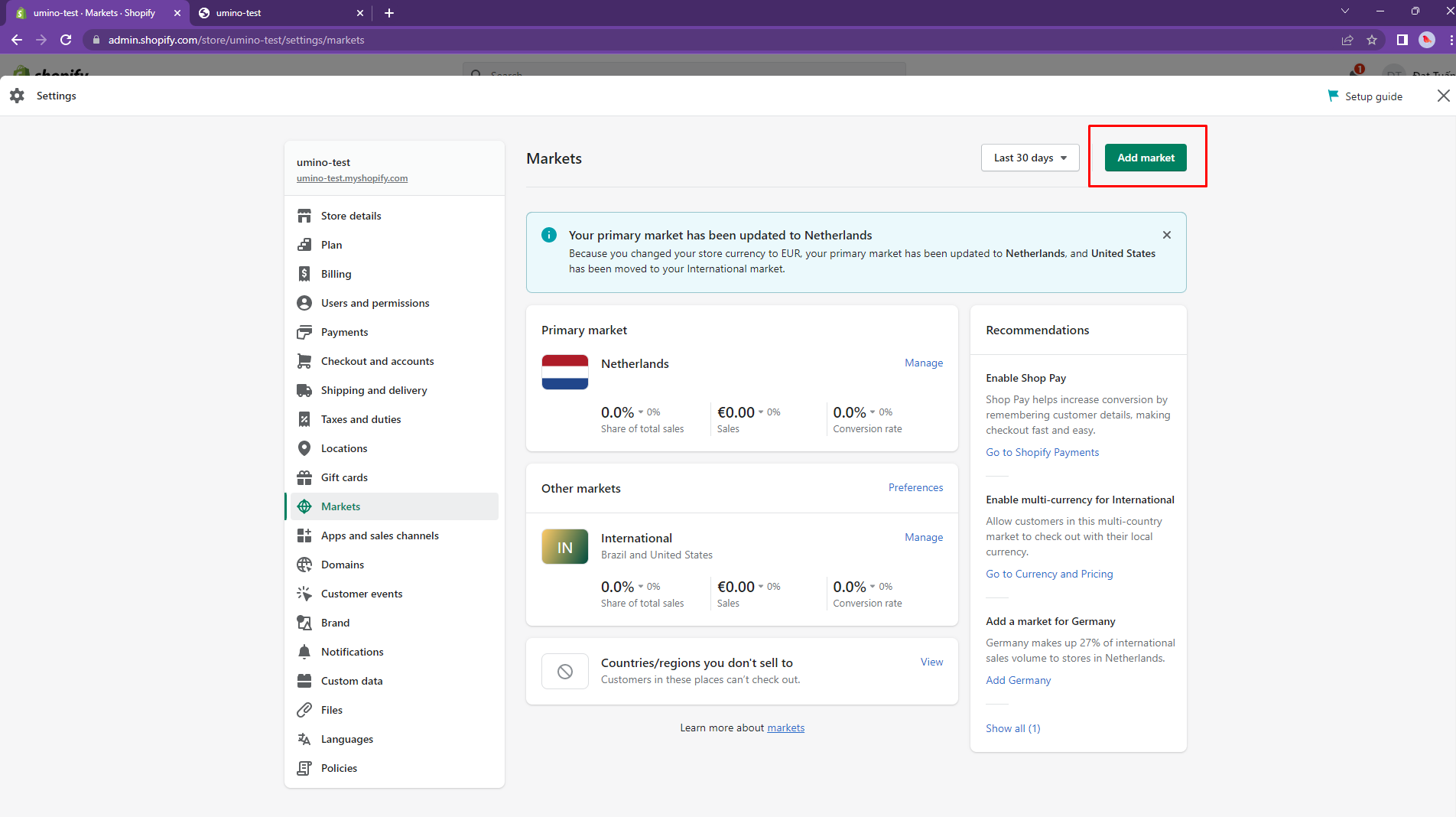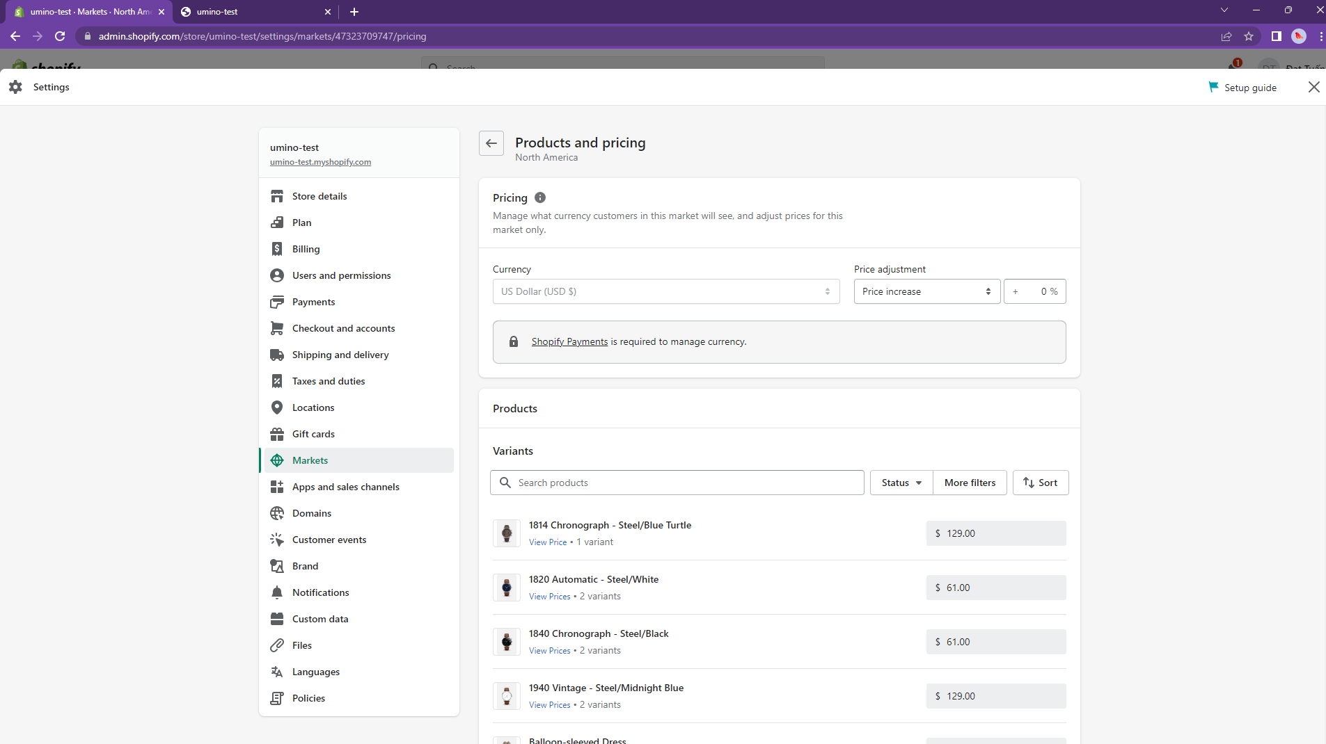 Note*: To ser the currency for new market, your must setup Shopify Payments first.