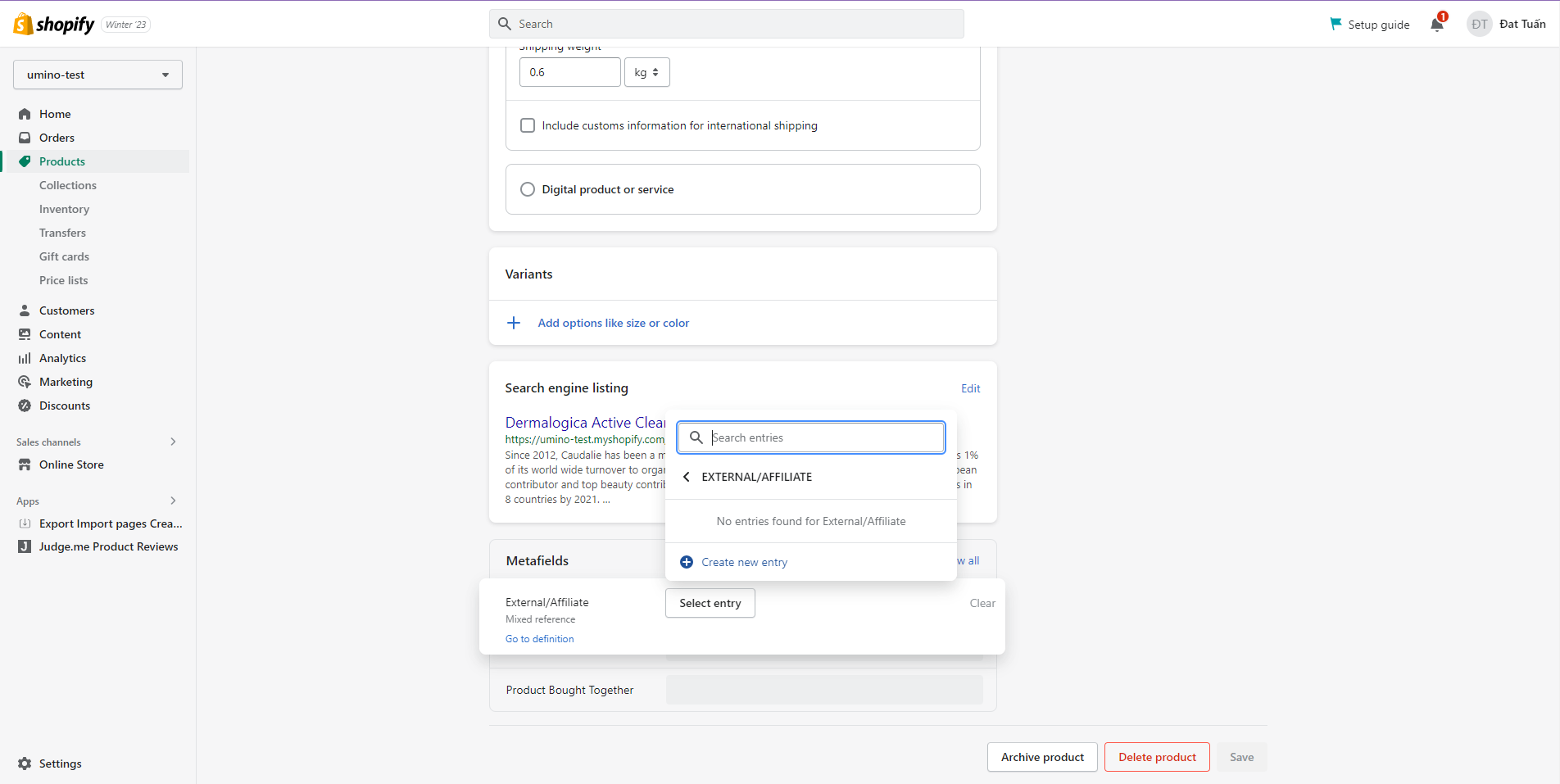 External / Affiliate products are not as commonly used as other types of product in Shopify. However, Umino theme supports this special type of product. You may want to redirect customers to other sites that sell the products, and you will need to create external / affiliate products for this purpose. To setup External/Affiliate product, please follow these steps: