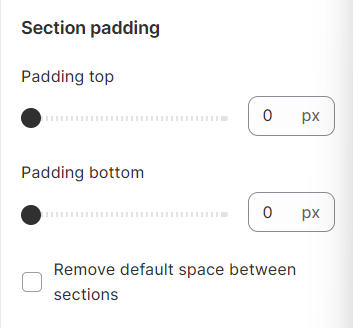 Section padding allows you to specify the space between the slideshow and the preceding or following sections, or both.