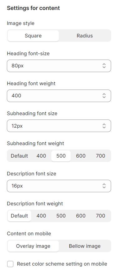Add some text for the slide’s heading and subheading, then determine the content's size, and position by choosing a value in the text size, content position, and alignment drop-down.