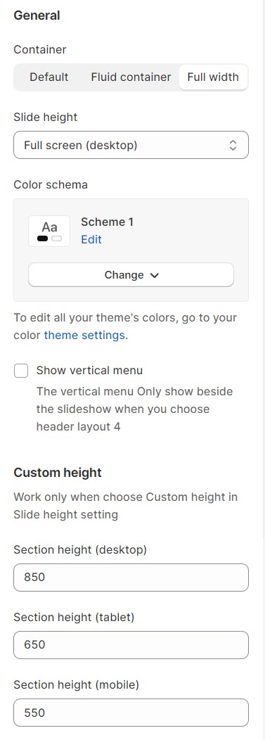 Section padding allows you to specify the space between the slideshow and the preceding or following sections, or both.
