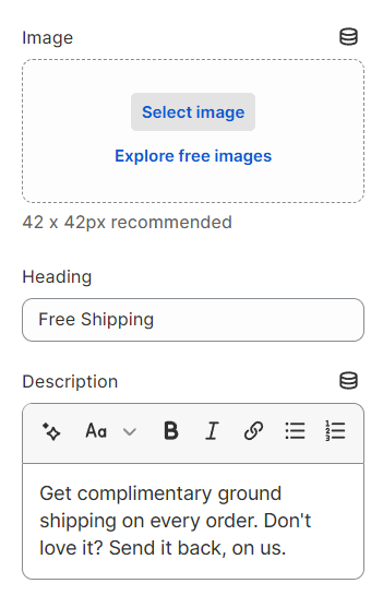 This section helps you add Icon, Header, Subheader, and Text in many boxes. You can use this section for many different purposes, especially for a more flexible Free Shipping section. Let's stick to this article to figure it out.