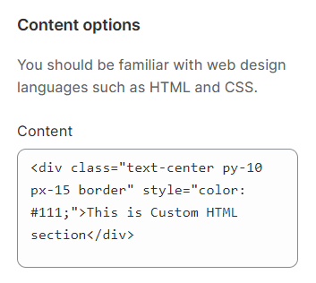 This is where you put your HTML code to custom your own section.