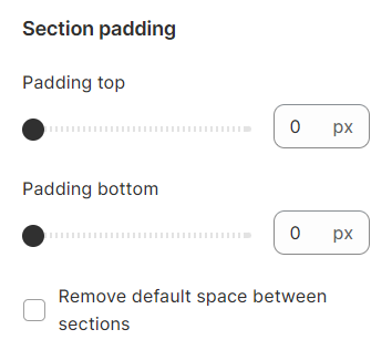 Section padding allows you to specify the space between the slideshow and the preceding or following sections, or both.
