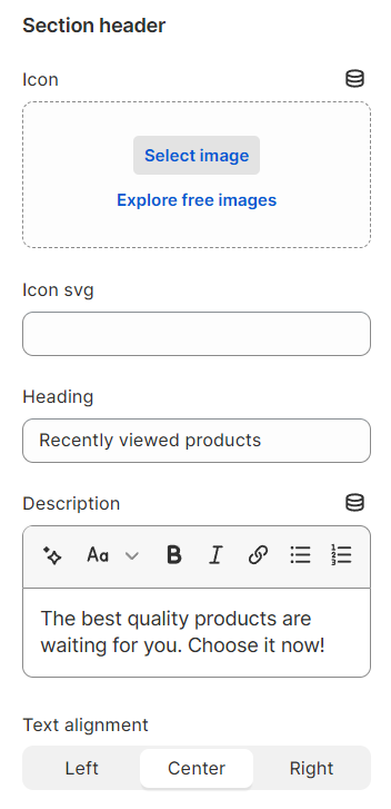 Use the provided text fields to add a suitable heading/subheading/description. Leave any of them blank if you do not want to display them.