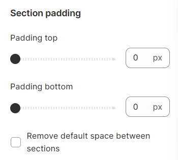 Section padding allows you to specify the space between the slideshow and the preceding or following sections, or both.
