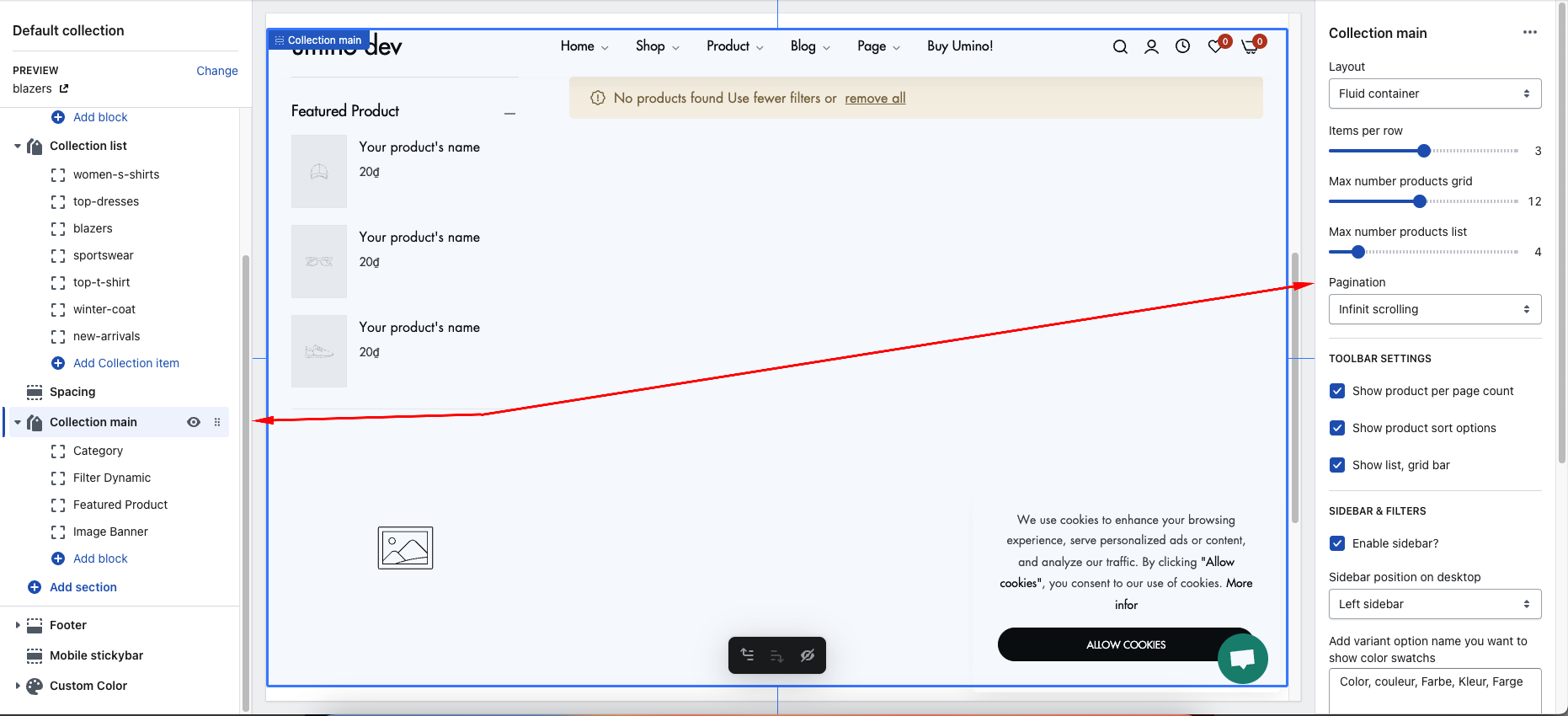 Setting pagination