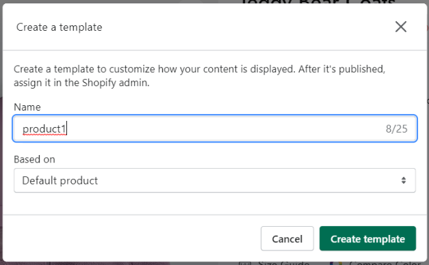 Choose the suitable value in the Based on dropdown, then select Create template.